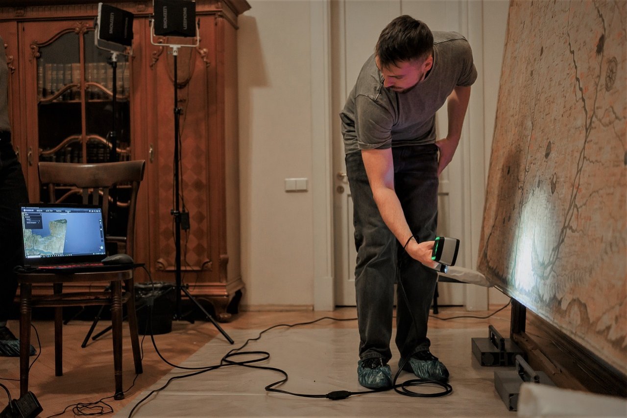 «Представители Русского географического общества обратились к нам с просьбой помочь в мониторинге состояния уникального картографического памятника – «Чертежа Сибири от границ Китайских». Для этого с помощью технологии трёхмерного лазерного сканирования мы создали его цифровую копию в текущем виде, что позволит следить за негативными изменениями на микроуровне. В дальнейшем, раз в несколько лет мы будем проводить повторные сканирования и сопоставлять полученные 3D-модели, чтобы получать информацию о состоянии его сохранности».