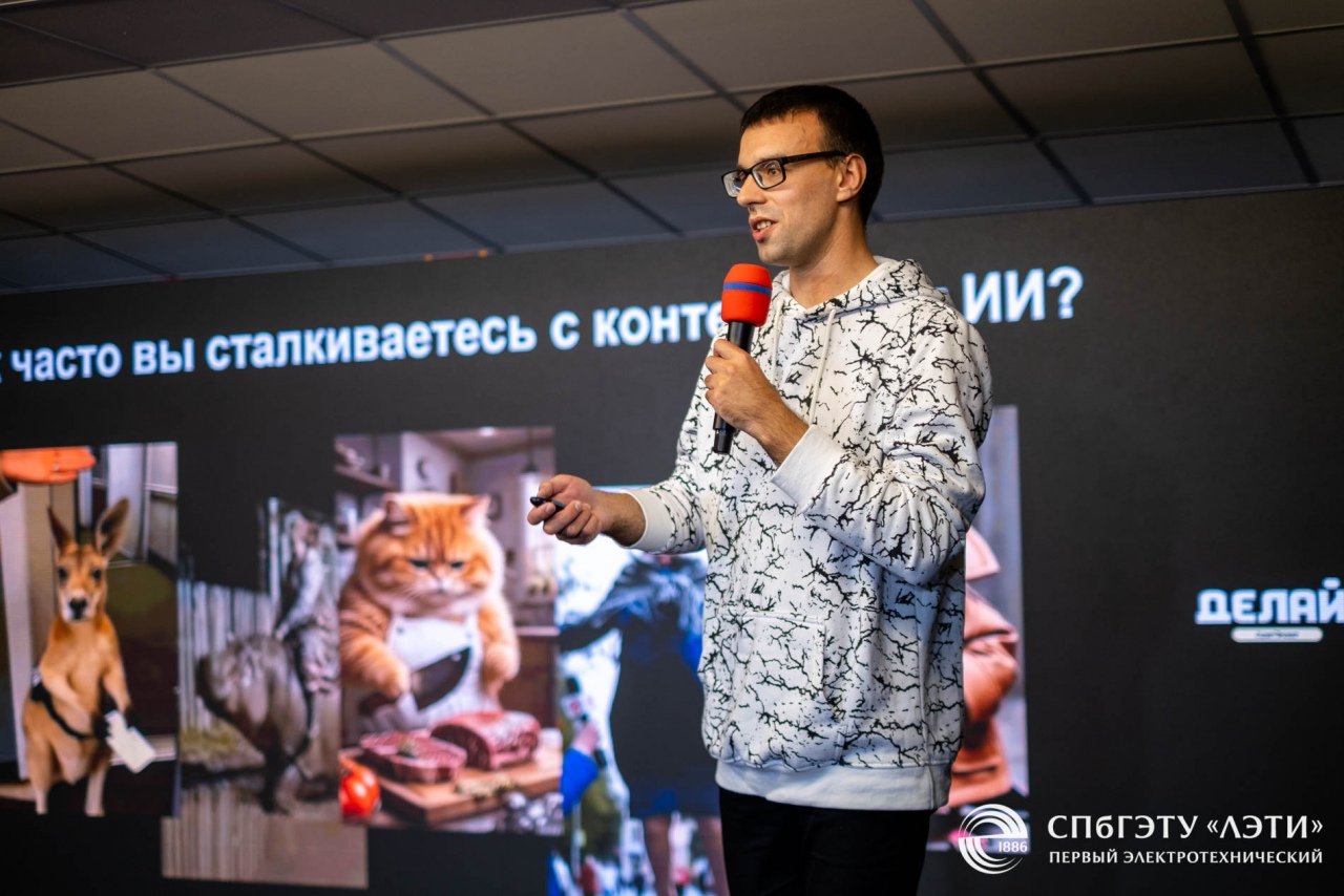 «Как генерировать мемы со скоростью света?» и «Почему будущее за фотонными чипами?». На эти вопросы ответил аспирант кафедры микро и наноэлектроники СПбГЭТУ «ЛЭТИ» Иван Чуманов, показав, как юмор и фотоника могут идти рука об руку.